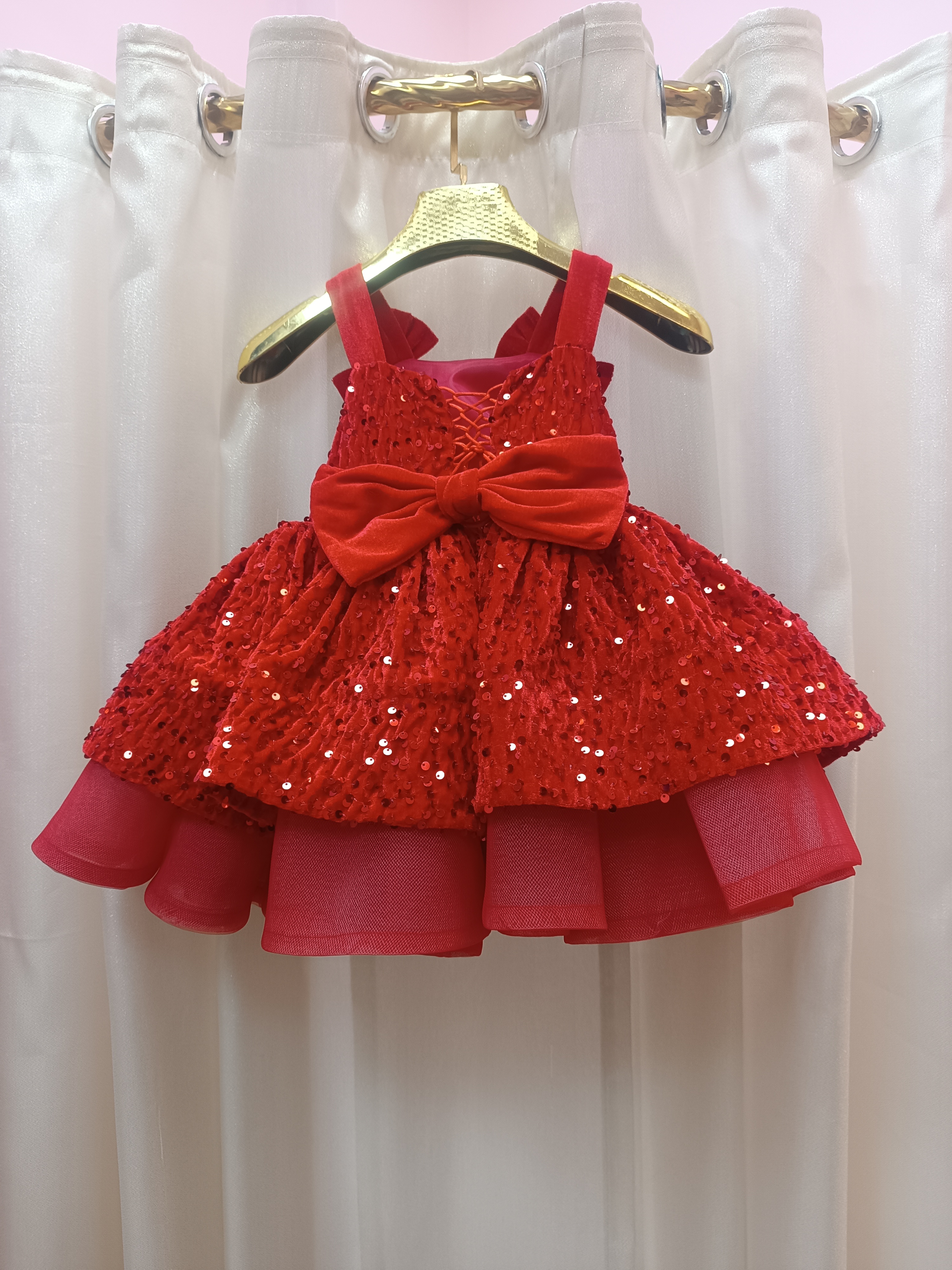 لباس مجلسی دخترانه مدل پریماه جنس مخمل پولکی
